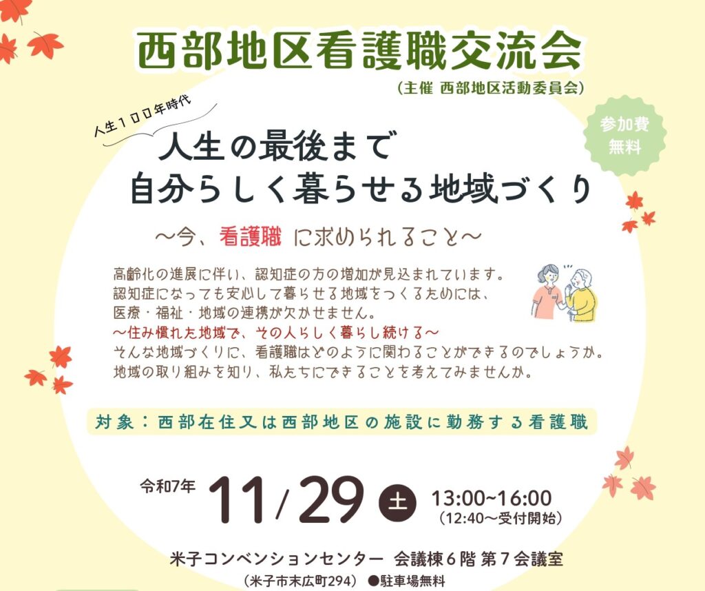 西部地区看護職交流会を開催します(11/29開催)
