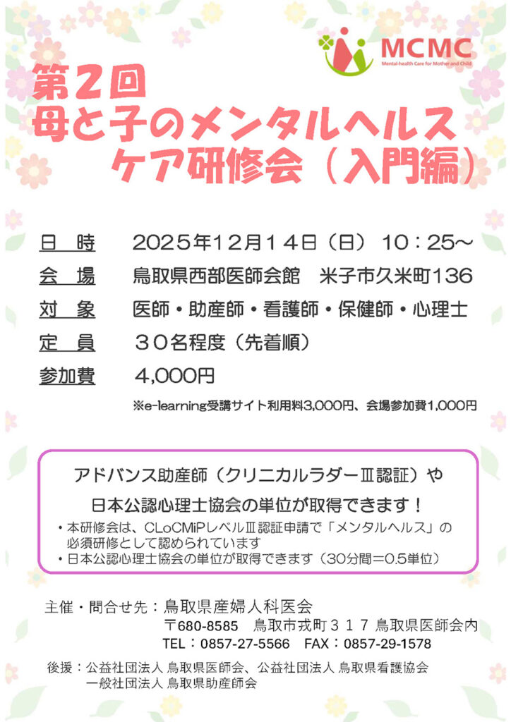 第2回 母と子のメンタルヘルスケア研修会(入門)について